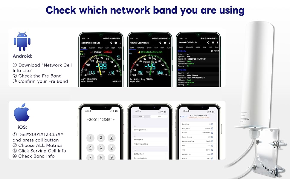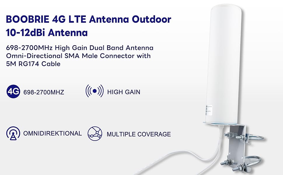 BOOBRIE 10-12dBi 4G Antenna Outdoor Dual SMA Male with 16.4ft RG174 Cable High Gain 698-2700MHz 3G/4G LTE White OmniDirectional Outdoor Mount Antenna for Cellular 4G LTE Router Mobile Hotspot Wireless