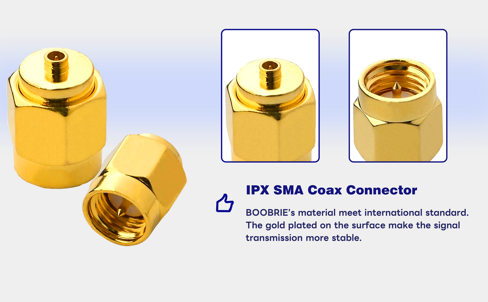 - Type: SMA Male to IPX / U.FL Male Coaxial Connector. BOOBRIE SMA to U.FL / IPX adapter is suitable for the first and second generation IPX / U.FL.