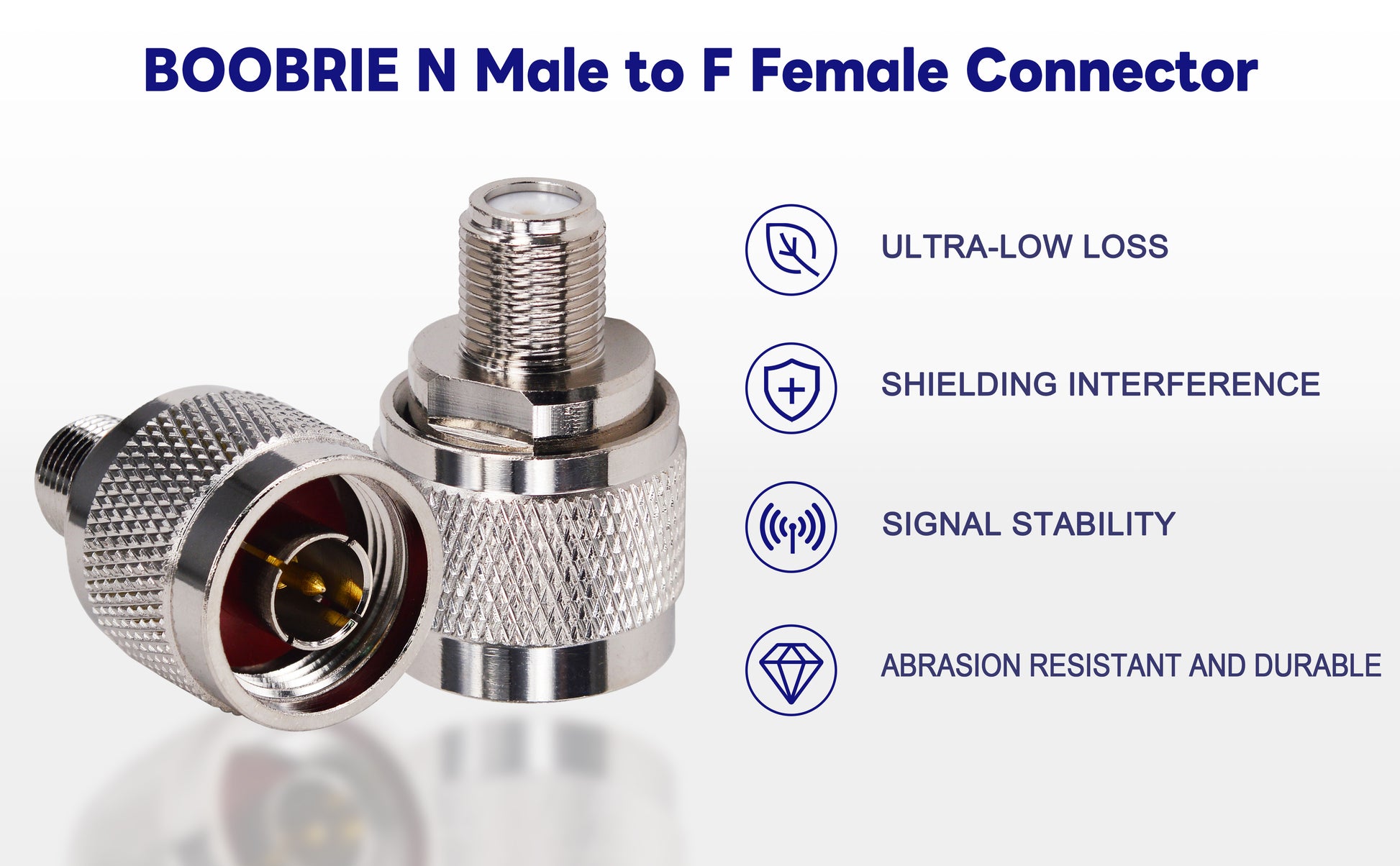 Boobrie N to F Coax Connector N Male to F Female RF Coaxial Adapter N Type(Plug) to F Type(Jack) for Antenna/Analyzer/Router/Booster Systems Pack of 2
