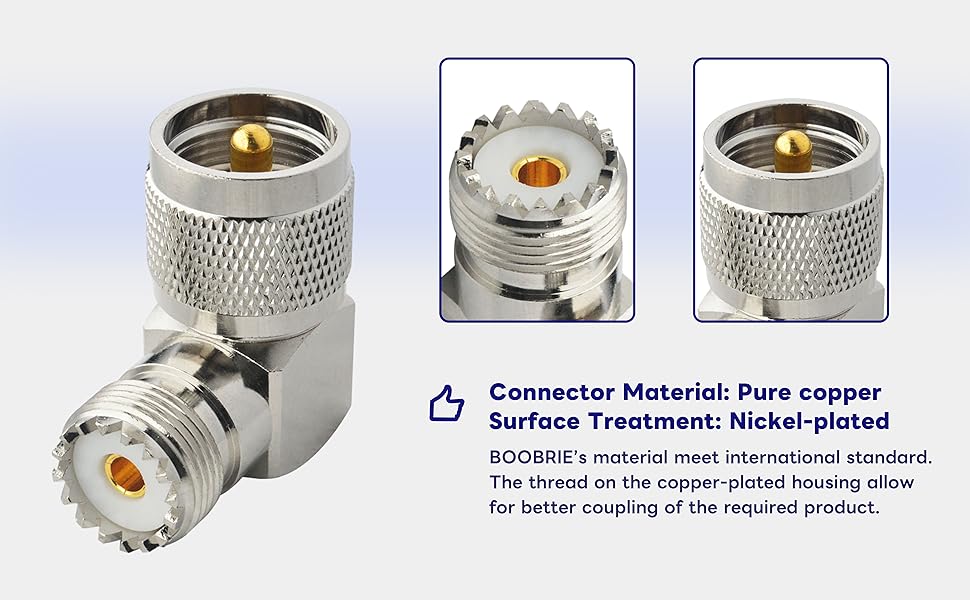 - Package included: 2PCS UHF PL259 Male to UHF SO239 Female Right Angle Connector.
