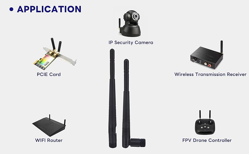 - Application: Wireless network router hotspot,wireless PCI PCI-E network card,notebook PC desktop computer external USB network adapter, WLAN AP & Hotspot wireless range extender Compatible with wireless security cameras; car trailer tractor backup cameras, rear view cameras; FPV Goggles, FPV receiver, FPV camera, FPV Drone controller